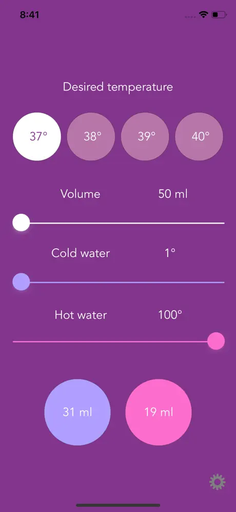 Tired of waiting for the water to cool down before mixing the infant formula? This app lets you take two amounts of water with different temperature and mix them together, then get the temperature you desire for your mix in a very easy way with sliders and buttons. You can either use it with °F / fl.oz US or °C / ml Goes from either 50 330 ml or 2.0 11.0 fl.oz US