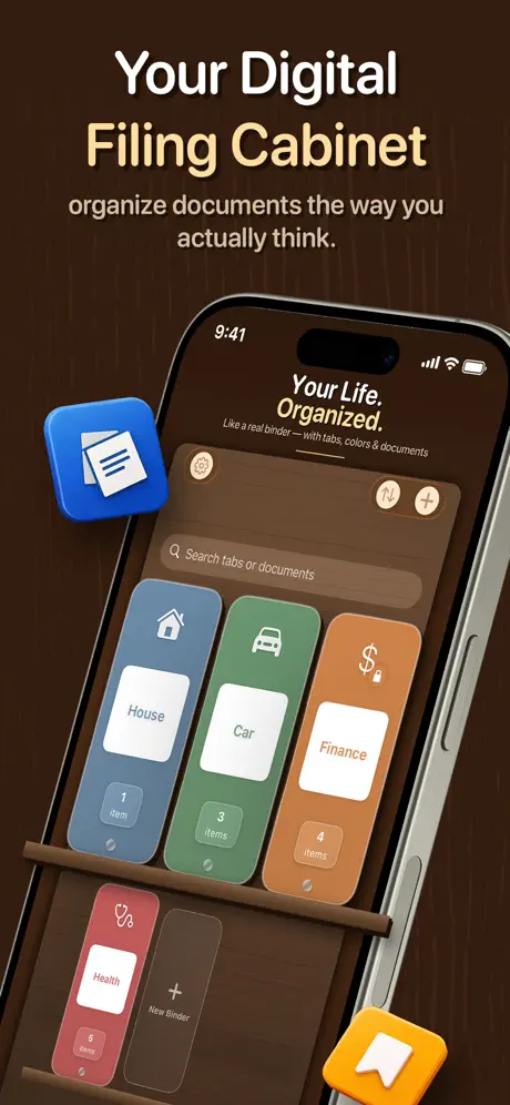 Keep all your important documents organized and searchable in one place. Binder lets you create colorful binders with customizable tabs – just like a real filing cabinet, but in your pocket. Scan & Search Everything Scan documents with your camera or import from photos and files. Powerful OCR technology makes every document searchable – find any receipt, contract, or note instantly. Stay Organized Create binders for different categories – home, car, health, finances. Add tabs to organize further. Customize colors and icons to make them yours. Never Miss a Deadline Set reminders for important dates found in your documents. Get notified and add events directly to your calendar. Private & Secure Protect sensitive binders with password protection. Your documents sync securely via iCloud across all your devices. Features: • Colorful binders with customizable tabs • OCRpowered instant search • Password protection • Reminders & calendar integration • iCloud sync • Import from camera, photos, or files